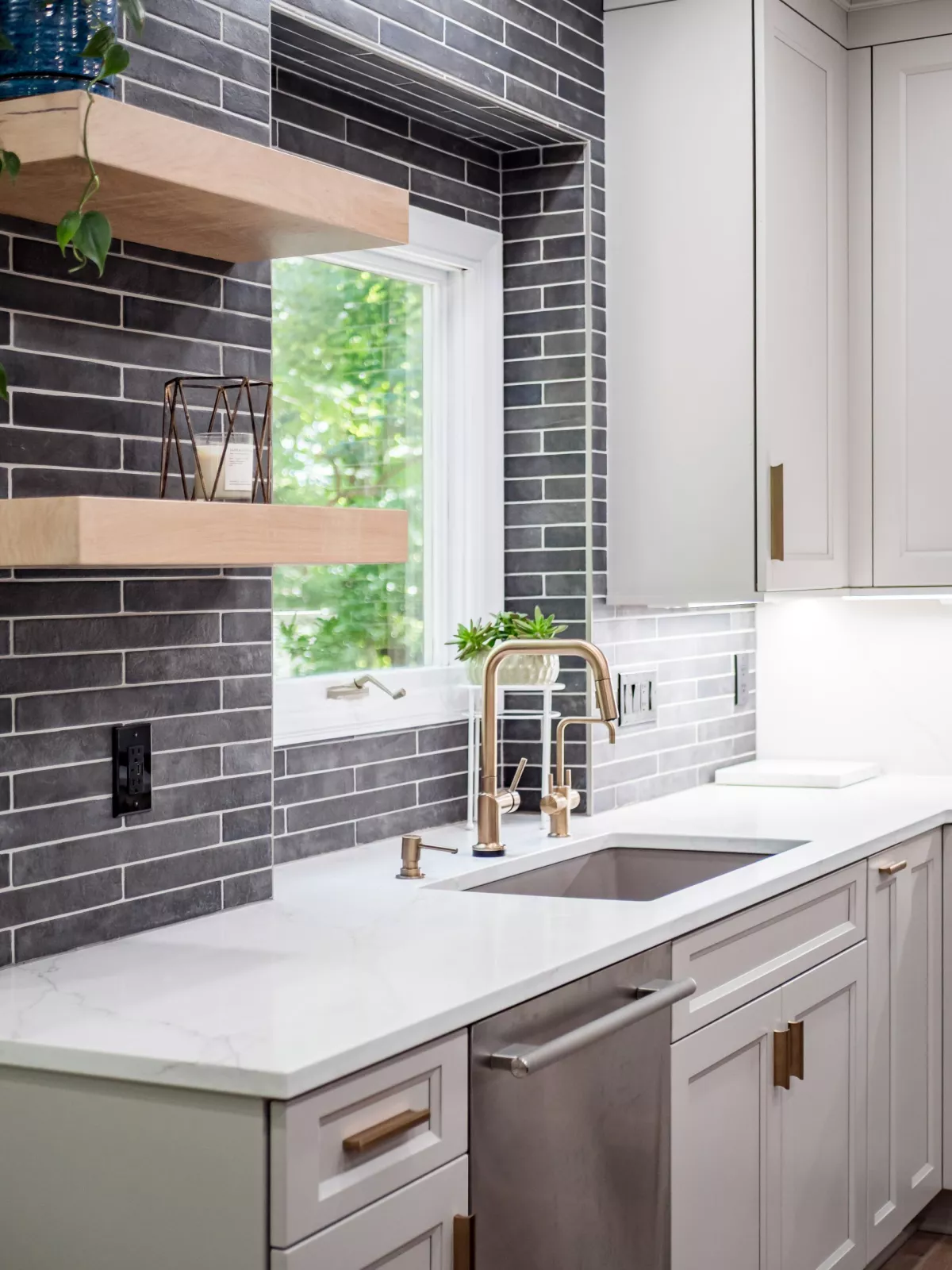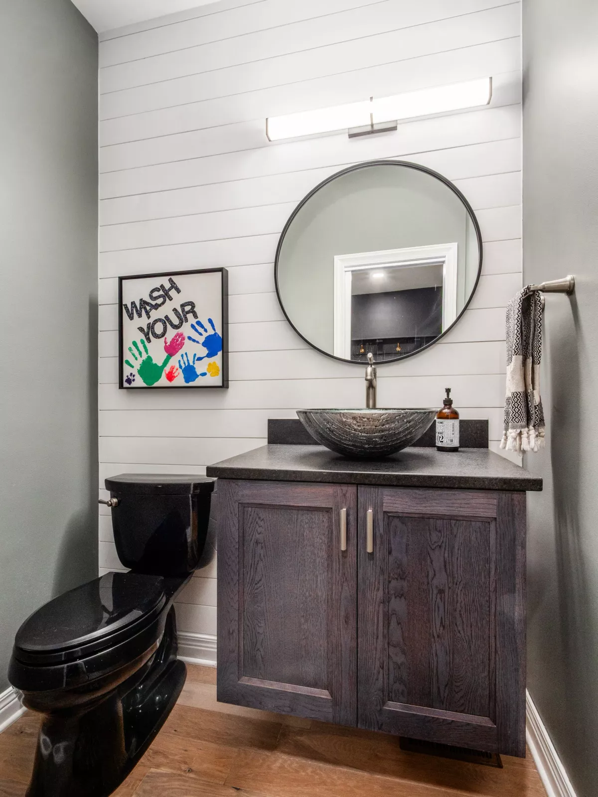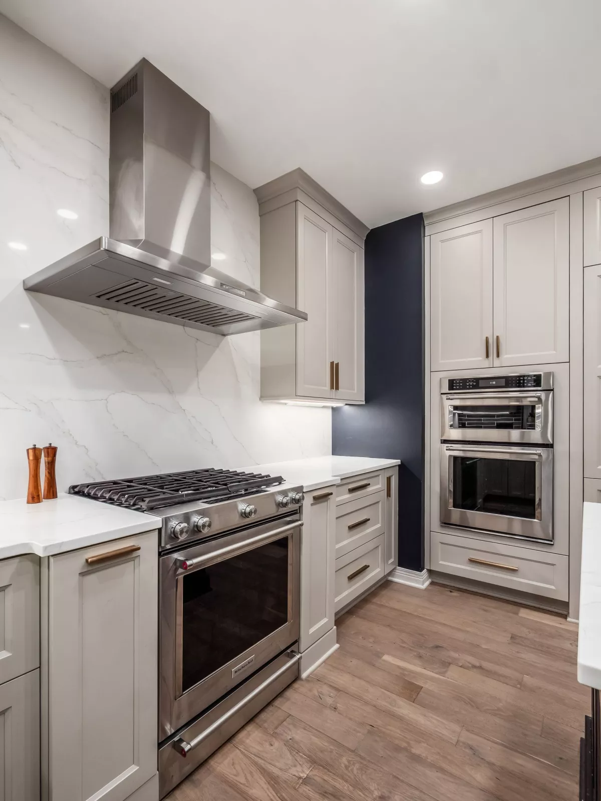 “This project was ambitious with the layout changes we made. We were able to convert a small, awkward kitchen with a tiny island into a generous space for family and friends to gather by relocating a powder bath to the previous laundry room location, while creating a separate mudroom off the garage entry. We then converted a closet in the upstairs hallway to a convenient laundry alcove. The project design and selections create a stunning impact for the new spaces, both in terms of beauty and function. It was such a pleasure putting this together for the family, and I hope they will enjoy it for many years to come!”
