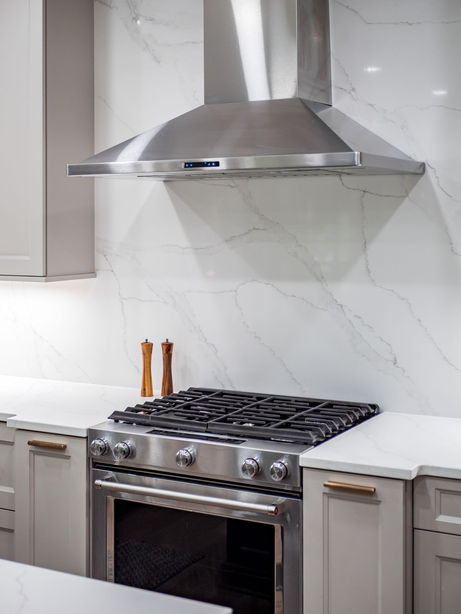 Quartz countertops (Calacatta Izaro) in the kitchen