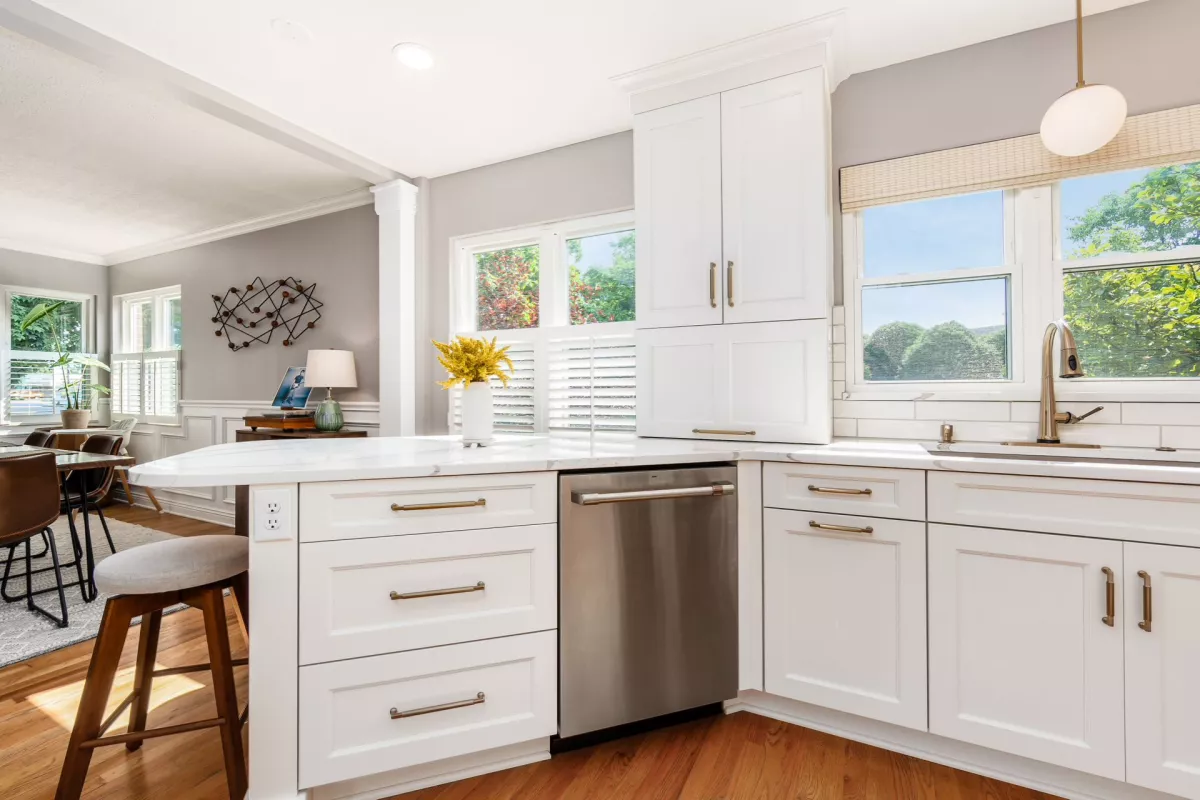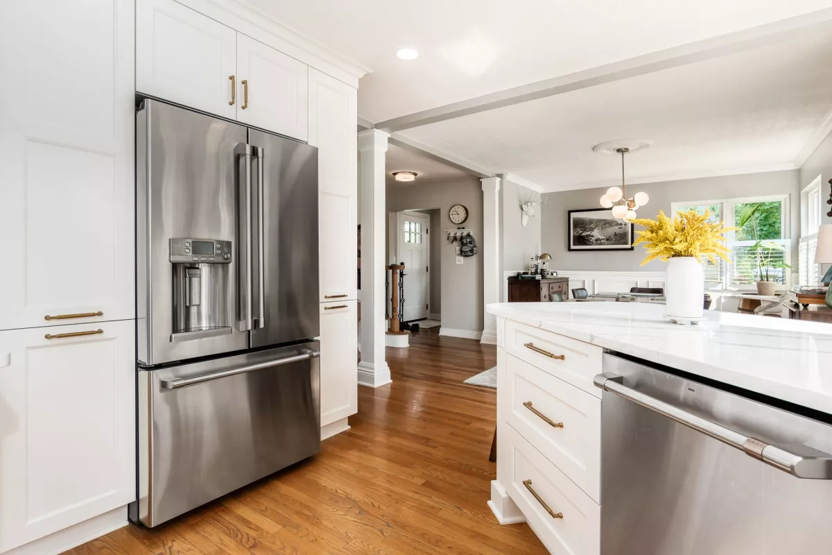 This kitchen remodel focused on transforming a small, outdated space into a modern, functional area. The design emphasized maximizing storage with custom cabinetry, pull-out pantry drawers while maintaining an open feel. Bright, neutral colors and sleek finishes were used to create a clean, contemporary look. Updated appliances and efficient lighting improved both the functionality and aesthetics, making the kitchen a more inviting and practical space for everyday use.