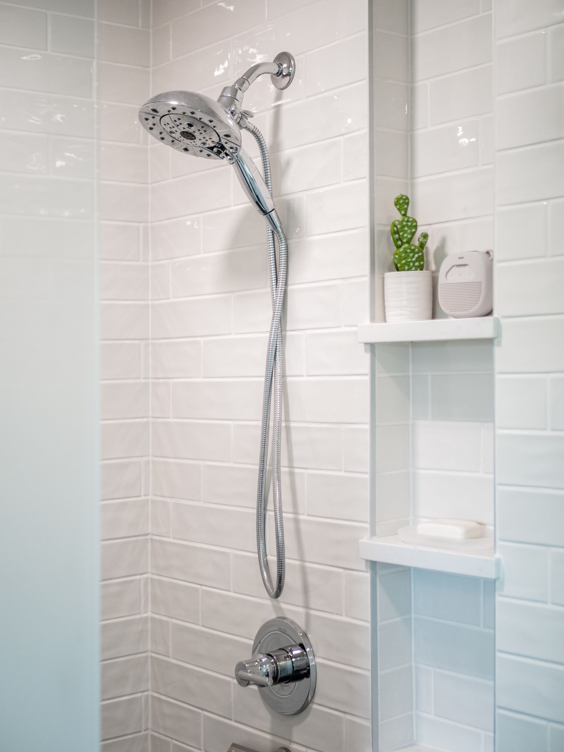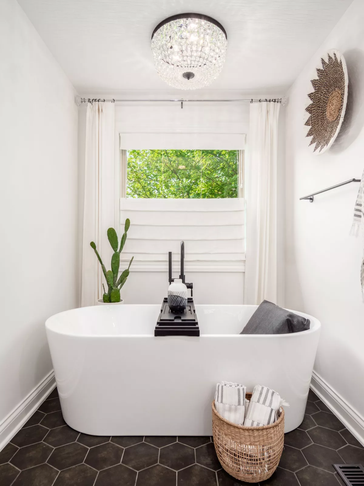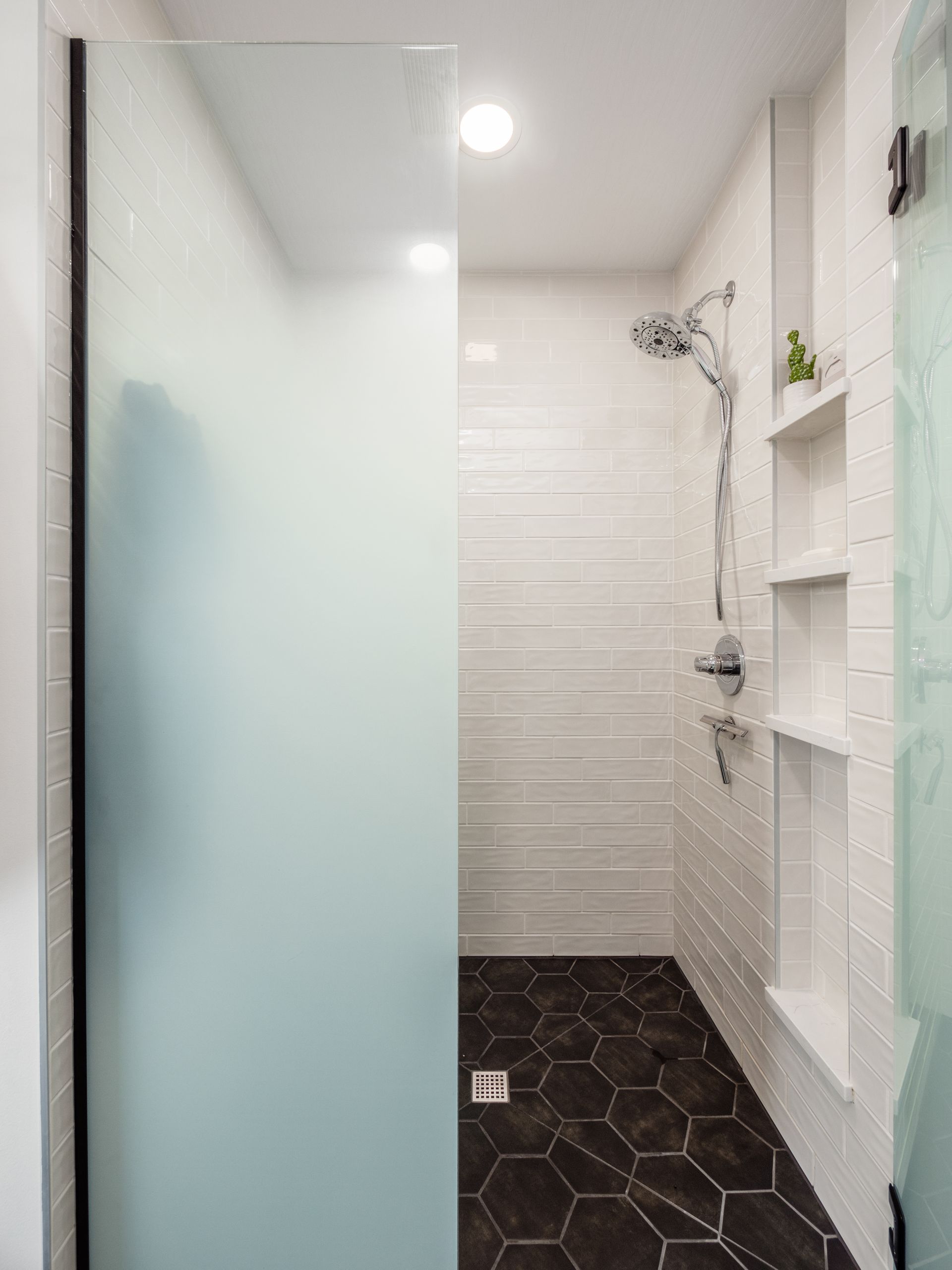 Tour a Master Bath and Hall Bath remodel that gives you the sense of transitional ambiance.