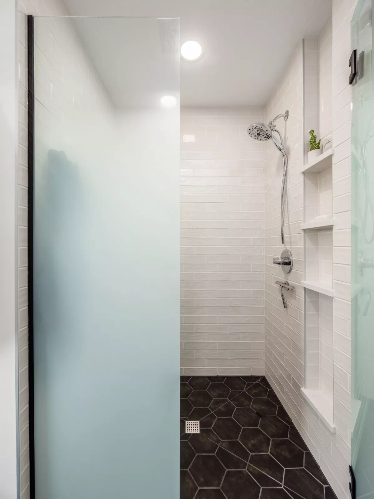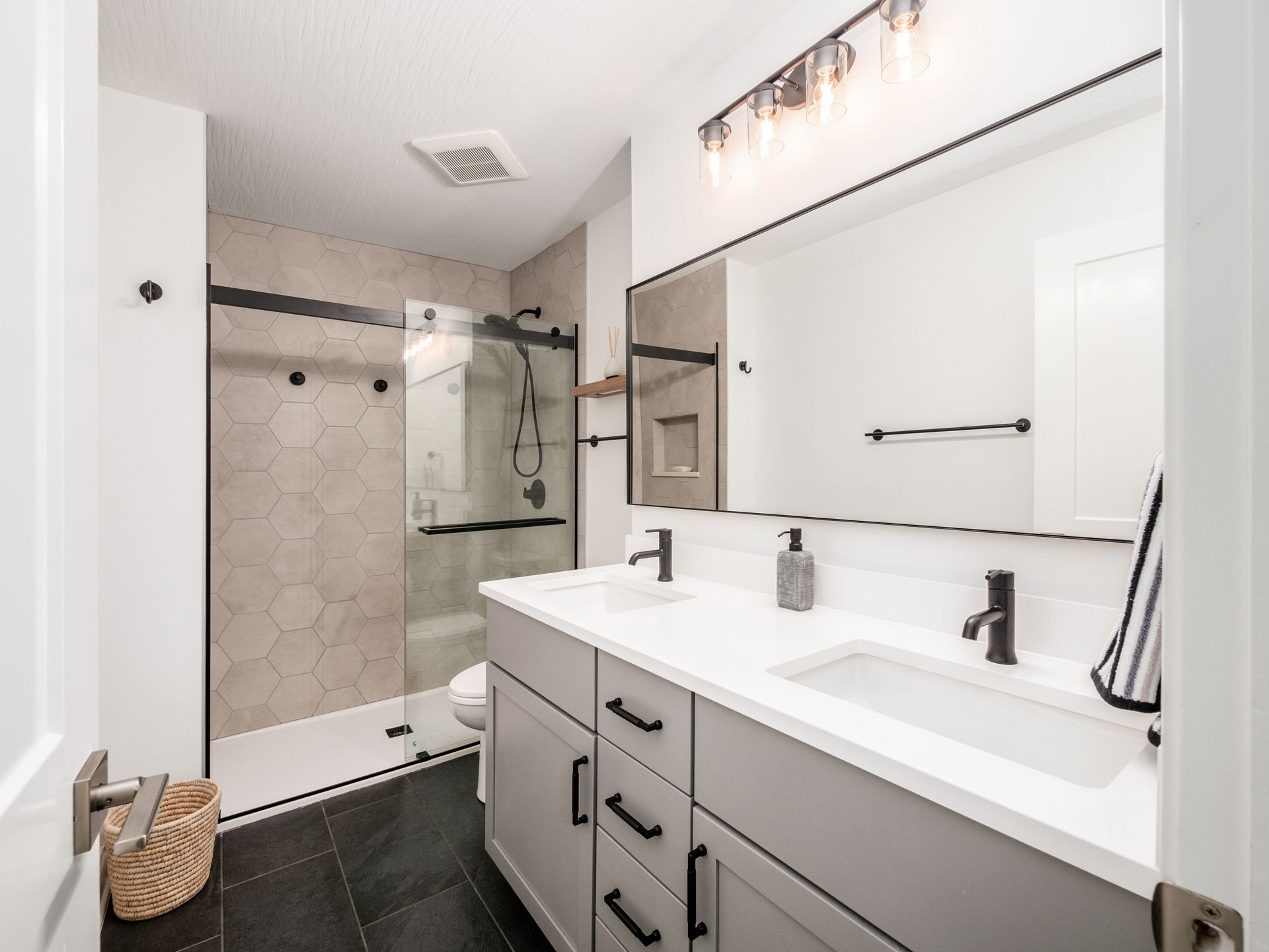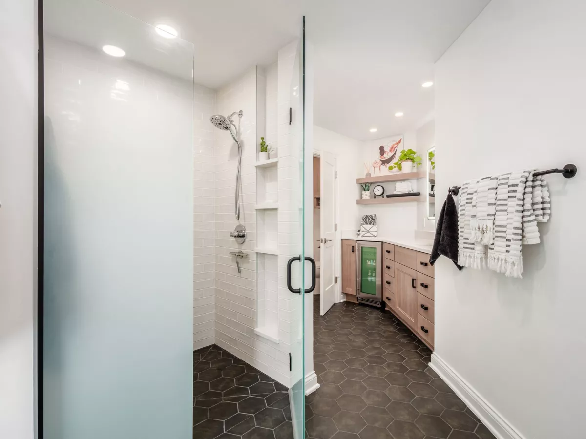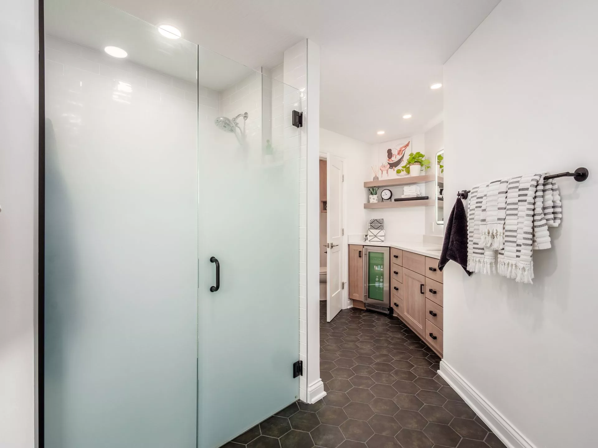 Our approach to the master bath was all about elevating everyday moments. We blended sophisticated finishes with smart design elements to create a spa-like atmosphere that offers both relaxation and indulgence. Every detail, from the custom cabinetry to the oversized shower, was designed with luxury and comfort in mind. ~ Jim Deen - Owner, Award Winning Designer