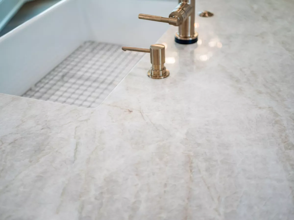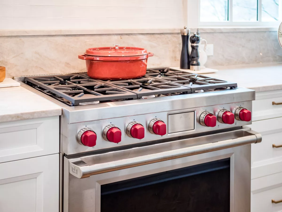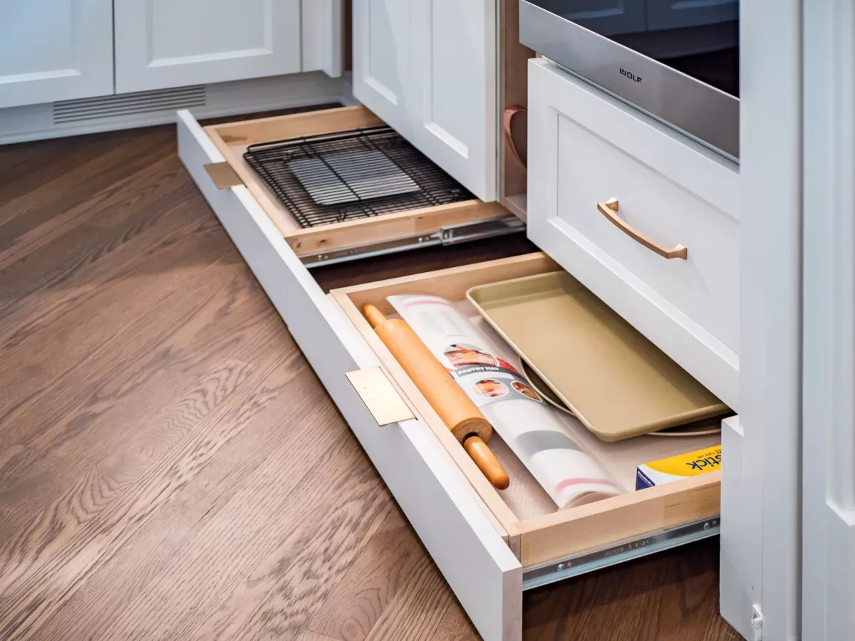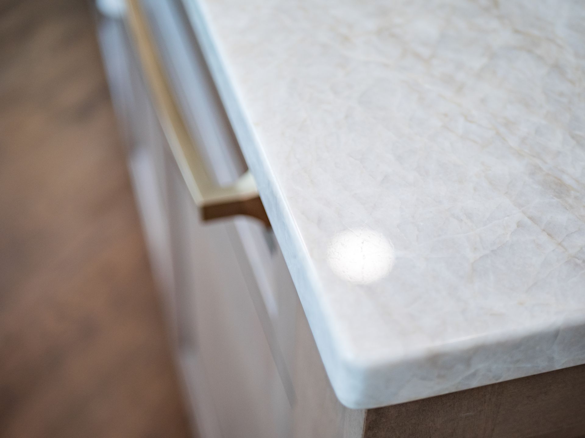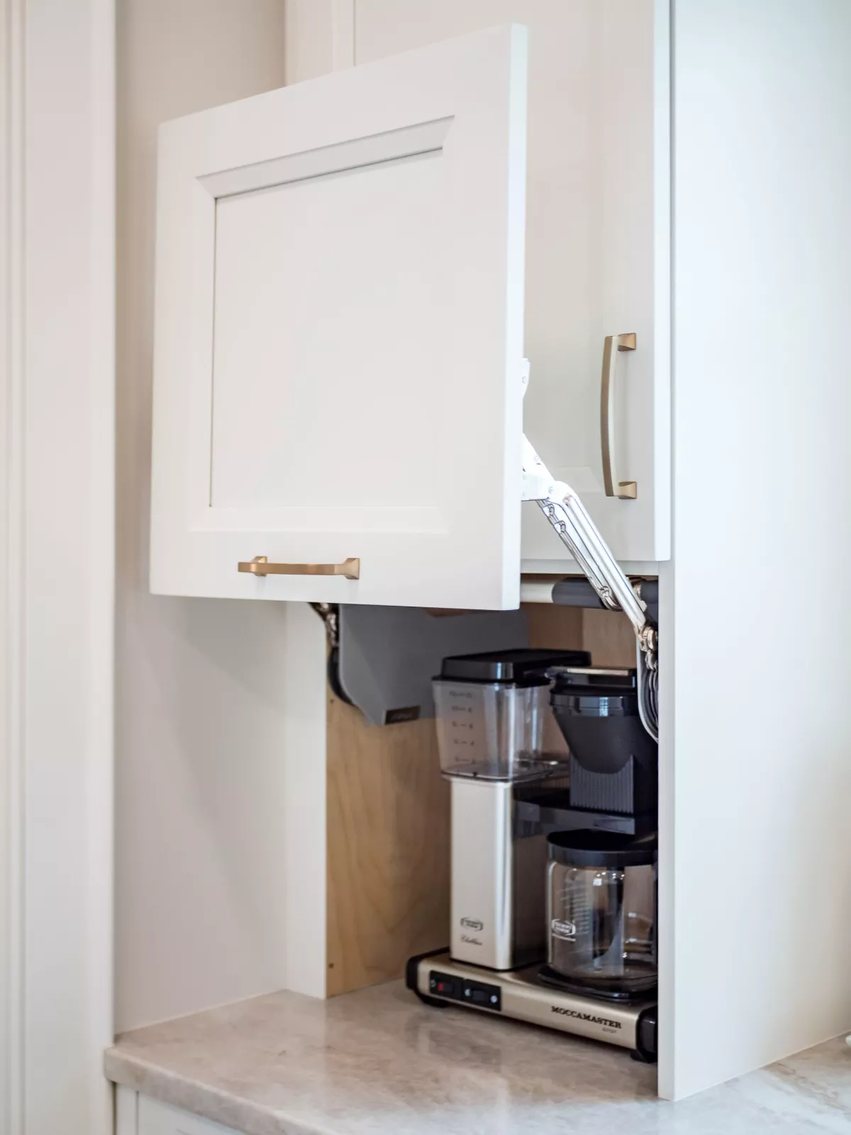 This stunning kitchen remodel showcases the perfect combination of luxury and functionality. At its heart are custom-crafted cabinets, designed to maximize storage while reflecting timeless sophistication. A striking custom hood with brass accents becomes the centerpiece of the kitchen, seamlessly tying together the aesthetic.
