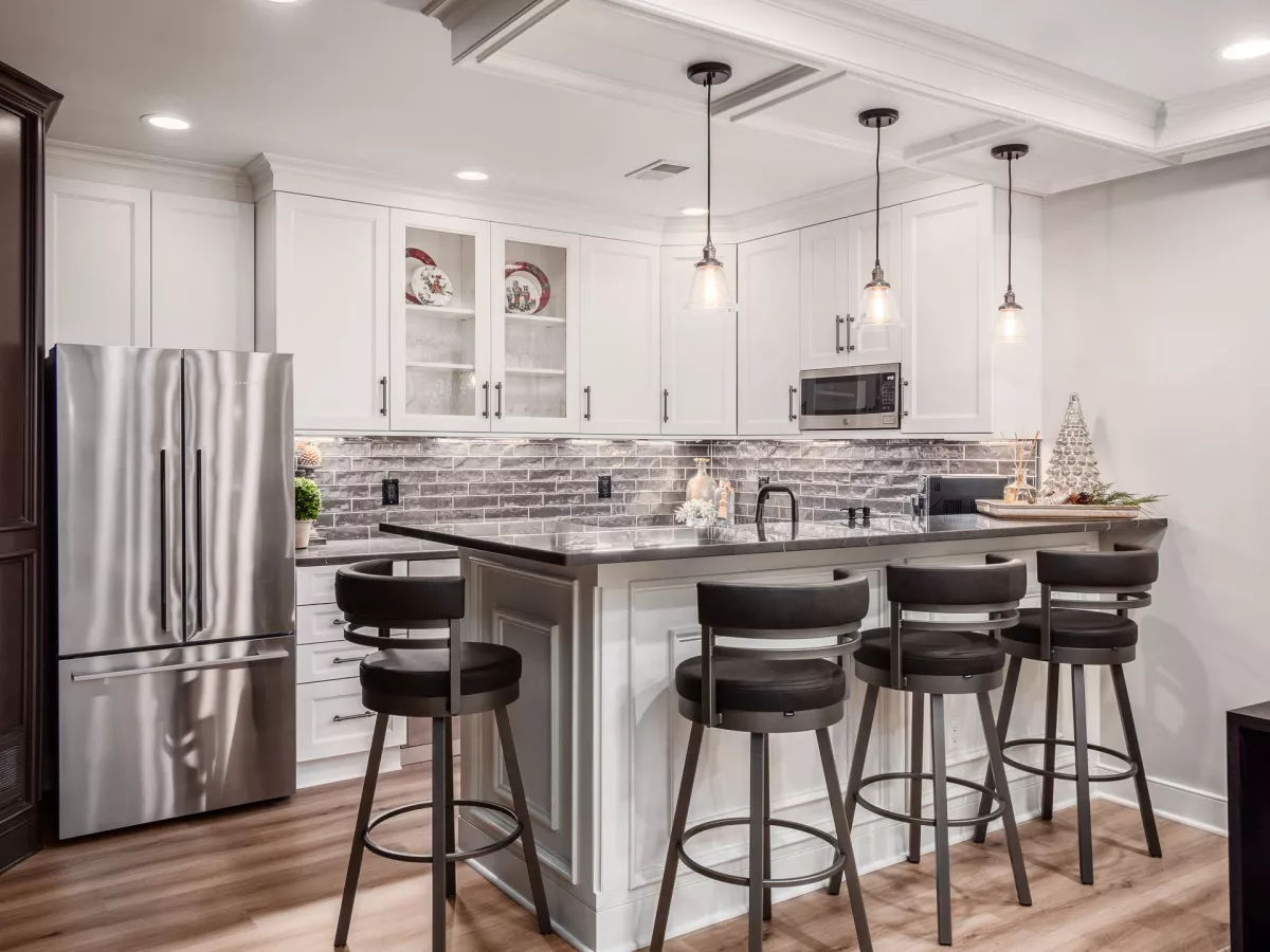 This kitchen transformation is truly one for the books! From the sleek quartzite countertops to the custom-built cabinetry and state-of-the-art appliances, every detail was meticulously planned to create a space that’s as functional as it is stunning. It’s a perfect blend of modern elegance and timeless charm, designed to be the heart of the home for years to come. ~ Award Winning Designer-Jim Deen