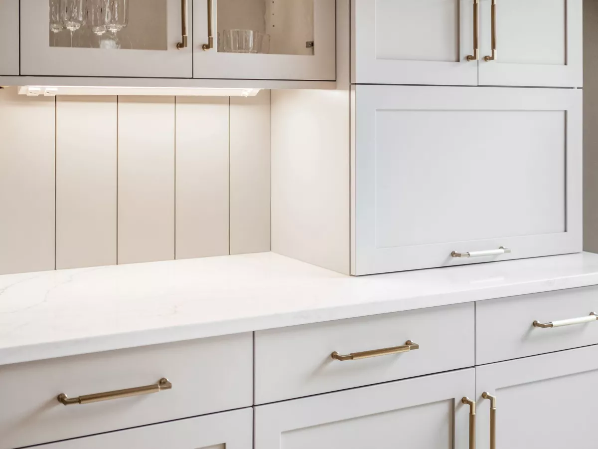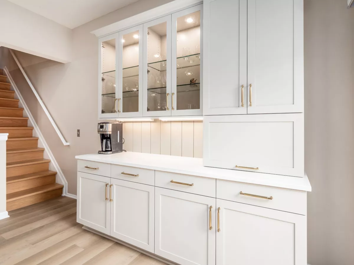 This space now features European construction cabinetry, offering not only sleek, clean lines but also enhanced storage capacity with wider drawers and maximized usable space. The taller upper cabinets make a bold visual statement while ensuring no inch of storage is wasted.